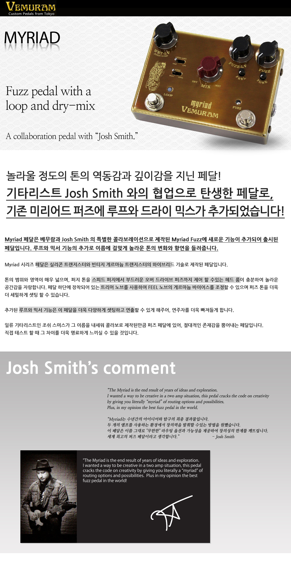 | 품명 / 모델명 | [Vemuram] Myriad Wet - Josh Smith Signature | ||
