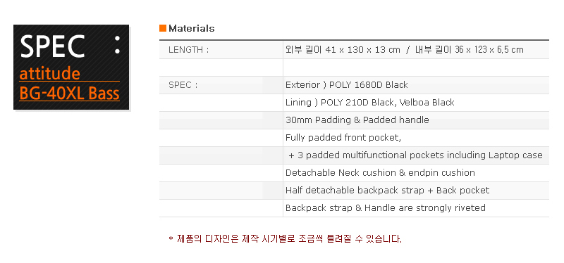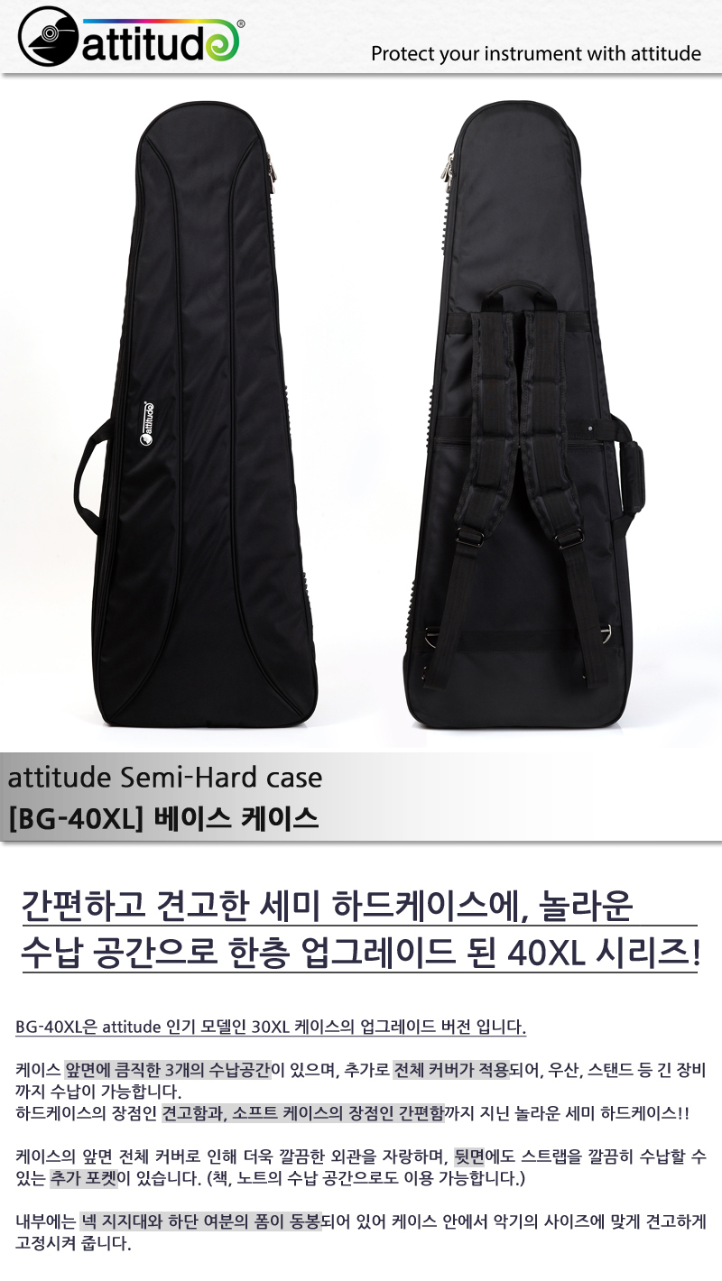 [Attitude] BG-40XL - Black, Semi-Hard Case 베이스 기타 용, 놀라운 수납공간의 세미 하드케이스