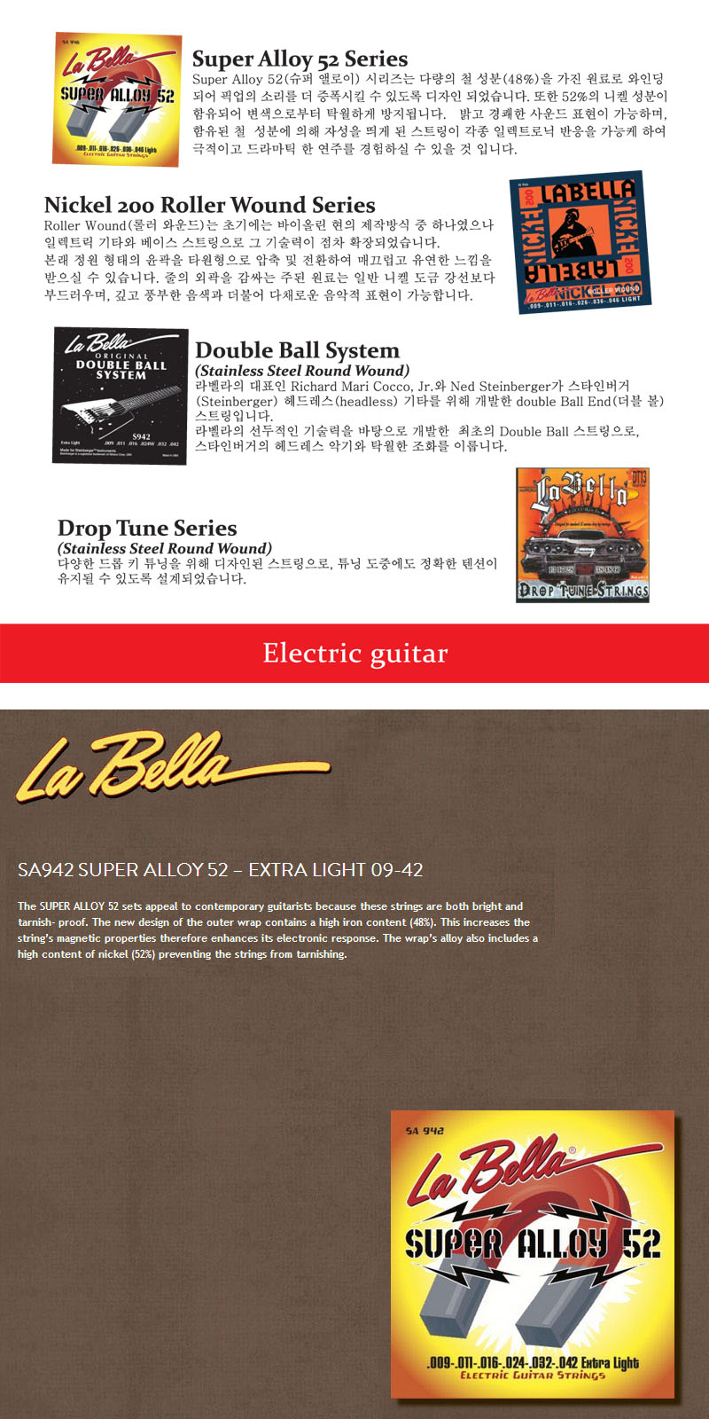 품명 / 모델명 [La Bella] SA942 Super Alloy 52 – Extra Light 09-42