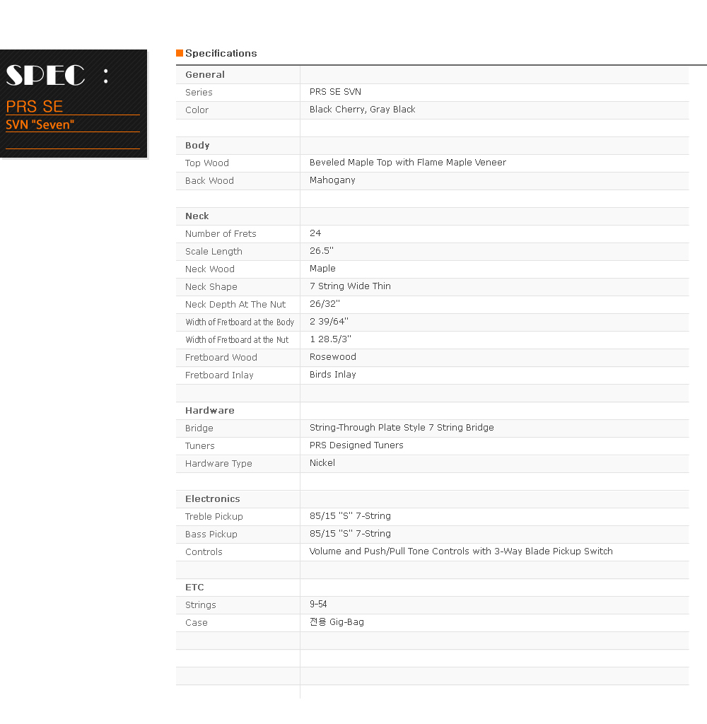 품명 / 모델명 [PRS SE] SVN Seven String